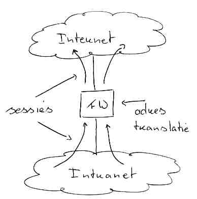 internet, maar je kunt je ook voorstellen dat firewalls intern, binnen